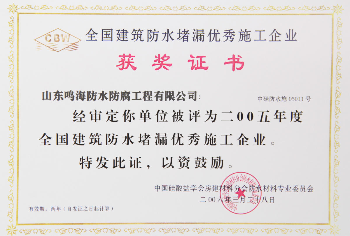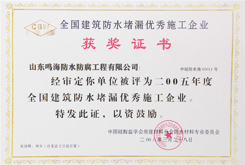 山東鳴海防水集團有限公司是科工貿為一體的綜合性企業(yè),成立于一九九八年,下設三個子公司、一個分公司、五個辦事處,分別為山東宇鳴防水保溫有限公司、威海市鳴海防水材料有限公司、威海宇鳴新型材料有限公司,宇鳴科技有限公司是中國建筑協(xié)會理事單位,連年評為企業(yè)誠信單位。在全國成立了多個辦事機構,分別為新疆、銀川、蘭州、青海、青島、大連、濰坊、北京等多個城市。